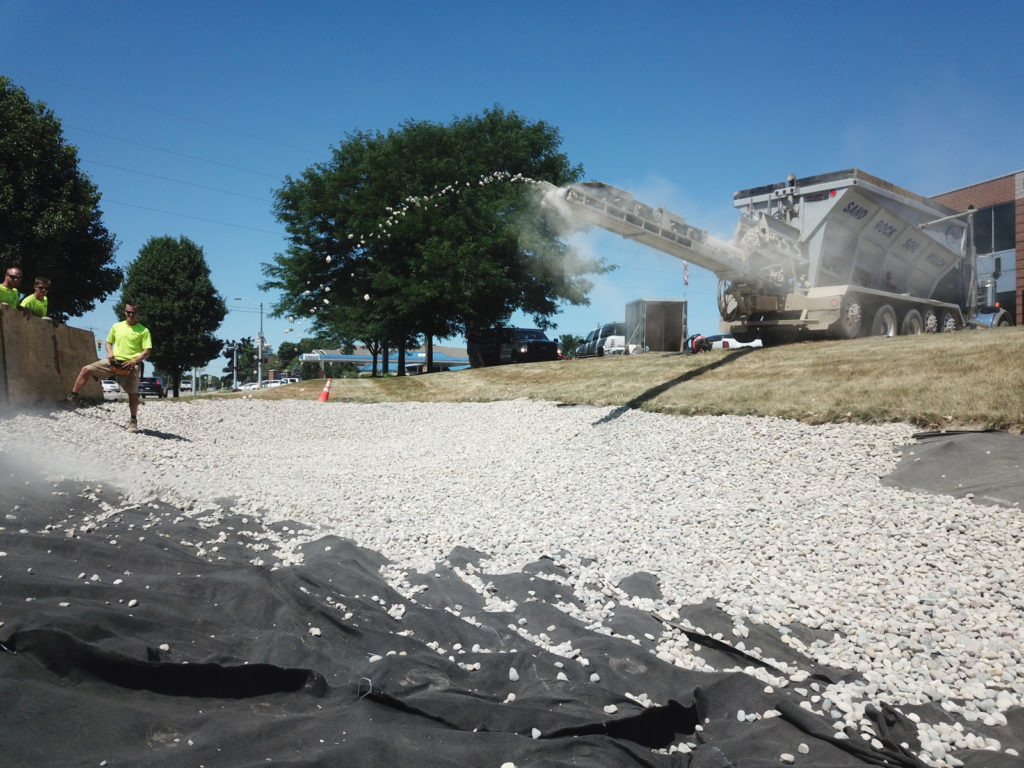 DIY stone installation is possible, though we do not recommend it. Measuring how much material you need to properly cover your base is difficult without expert guidance. However, what really sets a professional stone installation apart from a DIY is the equipment—our Express blower trucks and stone slinger trucks allow us to efficiently apply aggregate material in an accurate manner.